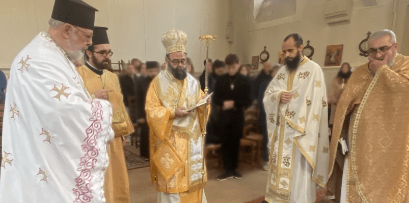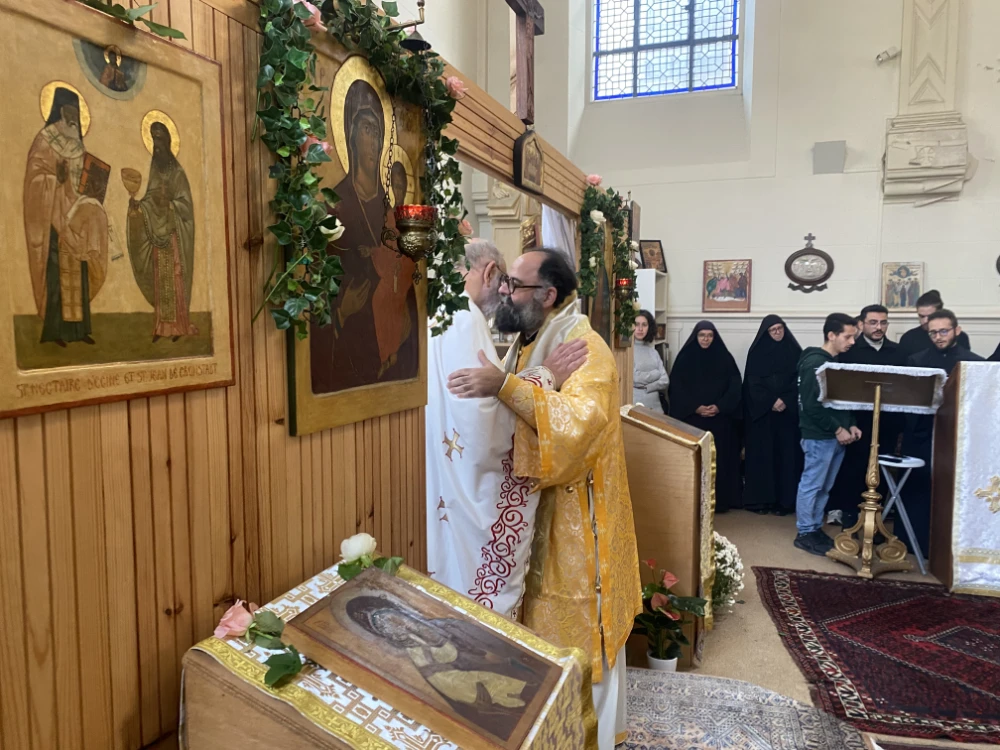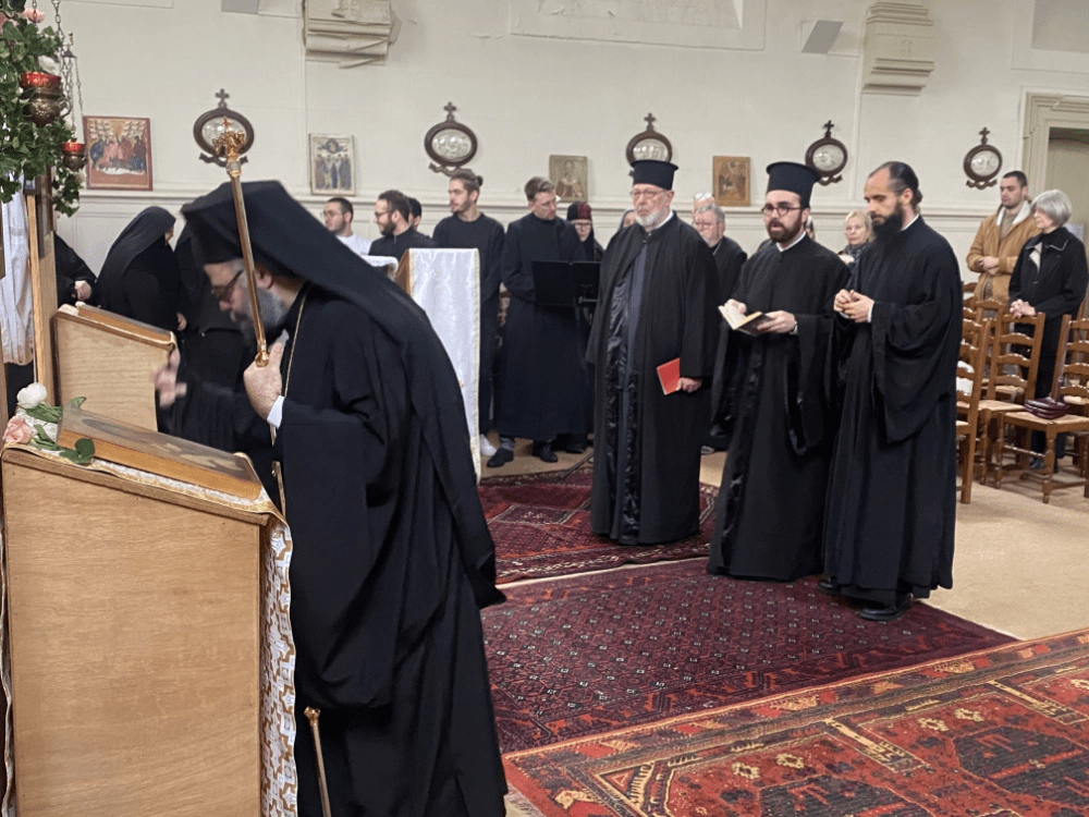 Le dimanche 9 novembre, jour de la fête de saint Nectaire d’Égine, l’un des deux saints protecteurs de notre paroisse de Rennes avec saint Jean de Cronstadt, la Liturgie a été présidée par le métropolite Dimitrios, entouré des pères Yannick, recteur de la paroisse, Théophile et Spyridon (communauté géorgienne) ainsi que du diacre Stéphane qui accompagnait le métropolite. Trois autres prêtres d’autres juridictions étaient également présents : les pères Alain (paroisse de Saint-Brieuc), David (communauté géorgienne) et Alexandre, (recteur de la paroisse rennaise de la Métropole roumaine). Mère Helena, higoumène du monastère de Bois-Salair, avec plusieurs sœurs, sont aussi venues se joindre à cette fête. L’archevêque catholique était représenté par le délégué diocésain à l’œcuménisme, le diacre Vincent Mahé. Près de 150 fidèles, dont beaucoup de jeunes, étaient présentes à la Liturgie, reflétant la vitalité et le dynamisme de notre communauté.