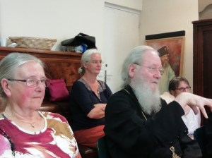 Père Syméon a alors poursuivi son enseignement du matin en liant sainteté et témoignage, ce dernier thème étant celui qui sera traité à Manosque du 1er au 4 novembre, lors du 16e Congrès de la Fraternité orthodoxe en Europe occidentale. Proposant nombre d’exemples concrets, souvent tirés de son expérience personnelle, et présentant de façon limpide, évidente, les principes fondamentaux d’amour de Dieu et d’amour fraternel, il a suscité beaucoup d’intérêt dans son auditoire, répondant encore ensuite à plusieurs questions avant que chacun ne regagne son foyer et sa paroisse, les lieux où mettre en pratique les bénéfices de cette rencontre.