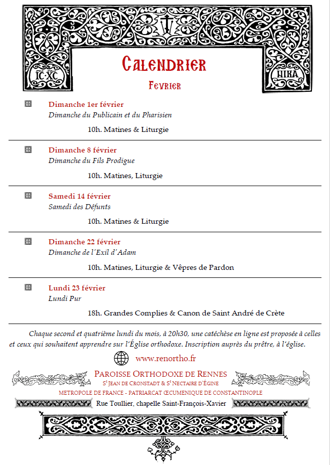 Calendrier des offices Télécharger le calendrier de janvier ici. Télécharger le calendrier de février ici. Partager : Partager sur Facebook(ouvre dans une nouvelle fenêtre) Facebook Share on LinkedIn(ouvre dans une nouvelle fenêtre) LinkedIn Imprimer(ouvre dans une nouvelle fenêtre) Imprimer J’aime chargement…